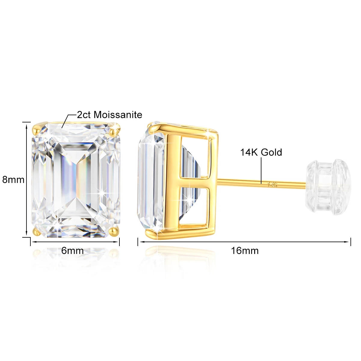 Be the first to review “14k Color Gold Moissanite Studs Emerald Cut 1ct 2ct 3ct Stud Earrings.”