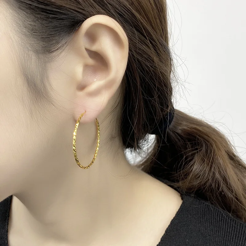 Unveiling the 24K Color Gold AU999 Starry Plain Hoop Earrings