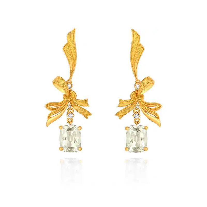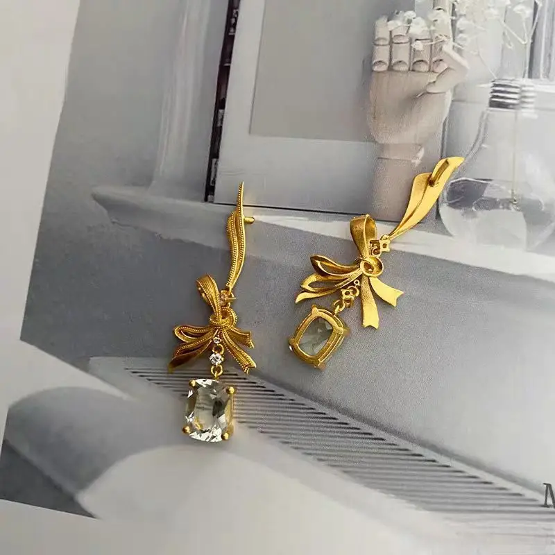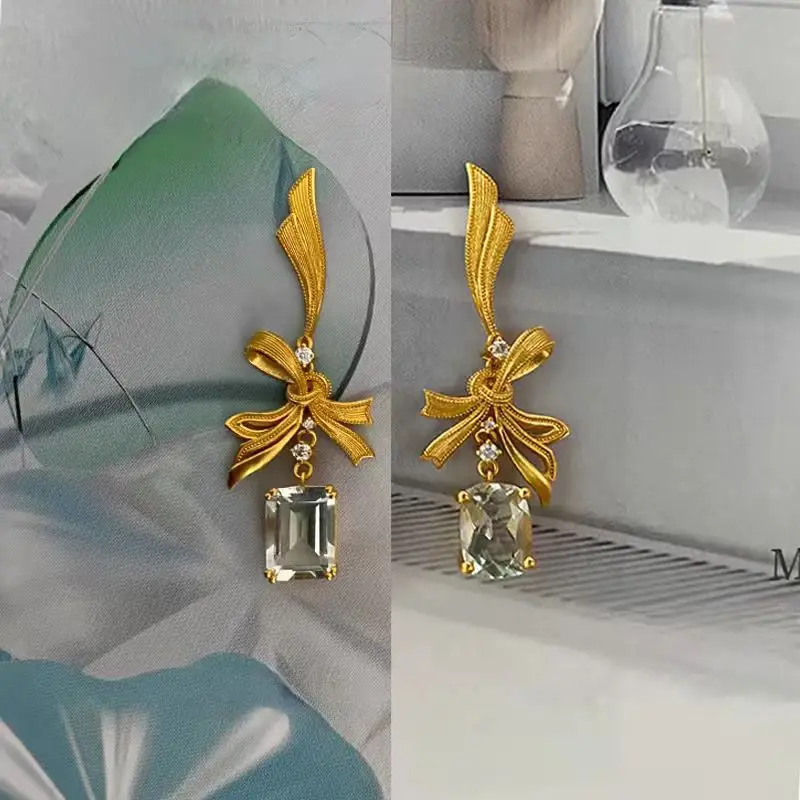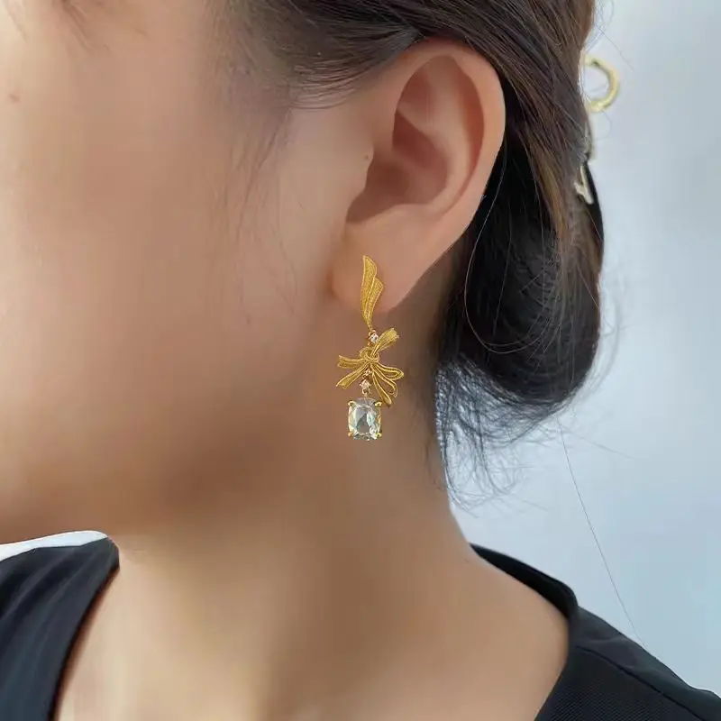Discover the Craftsmanship Behind the 24K Color Gold Bow Square Stud Earrings with Zircon