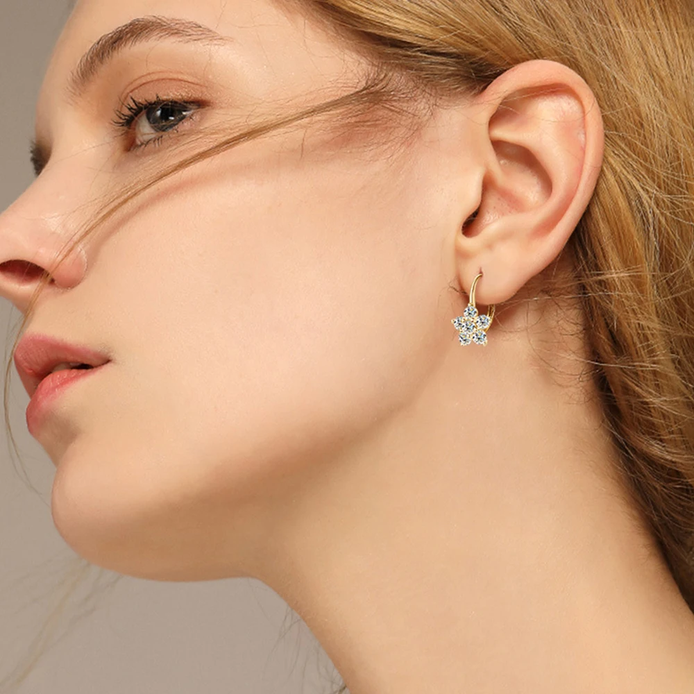 These earrings incorporate moissanite, a stone renowned for its eco-friendly and ethically sourced attributes. The result is a piece of jewelry that not only looks stunning but also aligns with modern values of sustainability and responsible sourcing, making it a thoughtful addition to any collection.