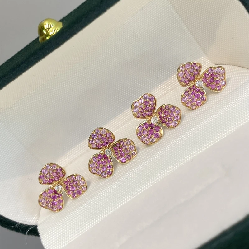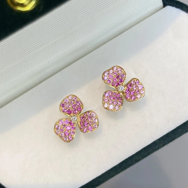 Transform Your Look with Aazuo 18K Solid Yellow Gold Natural Pink Sapphires Earrings