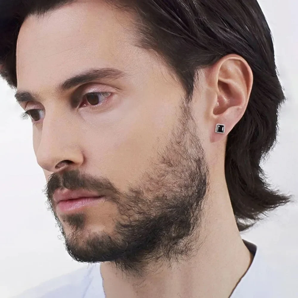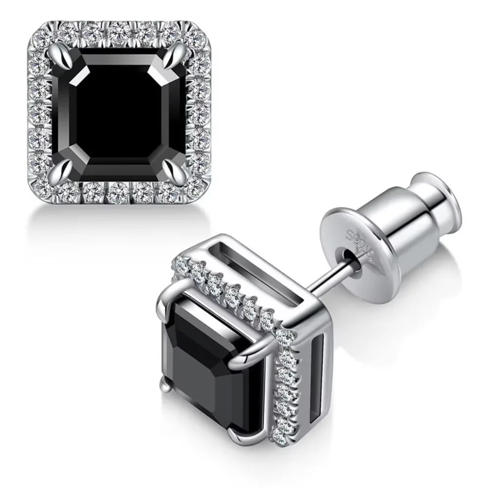 Exquisite Craftsmanship in All Moissanite Stud Earrings for Women Men Black Square D Color Diamond