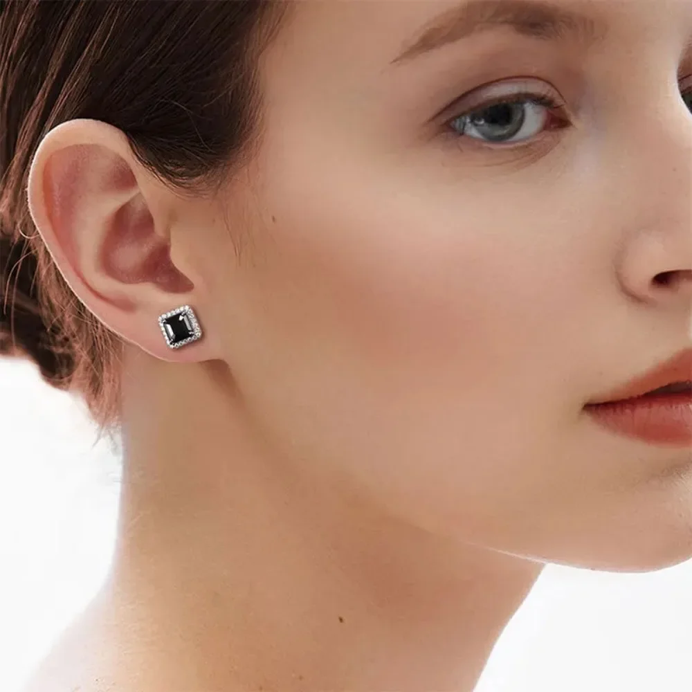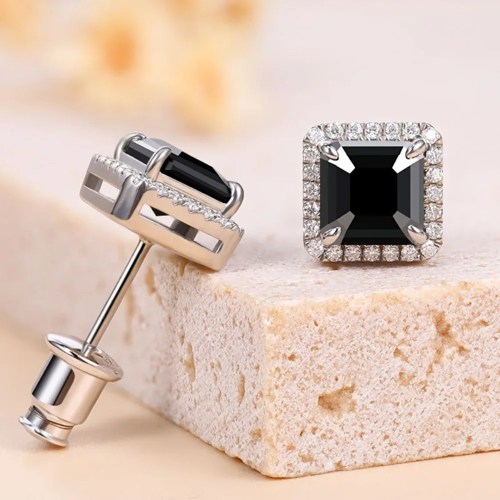 The Ideal Gift: All Moissanite Stud Earrings for Women Men Black Square D Color Diamond