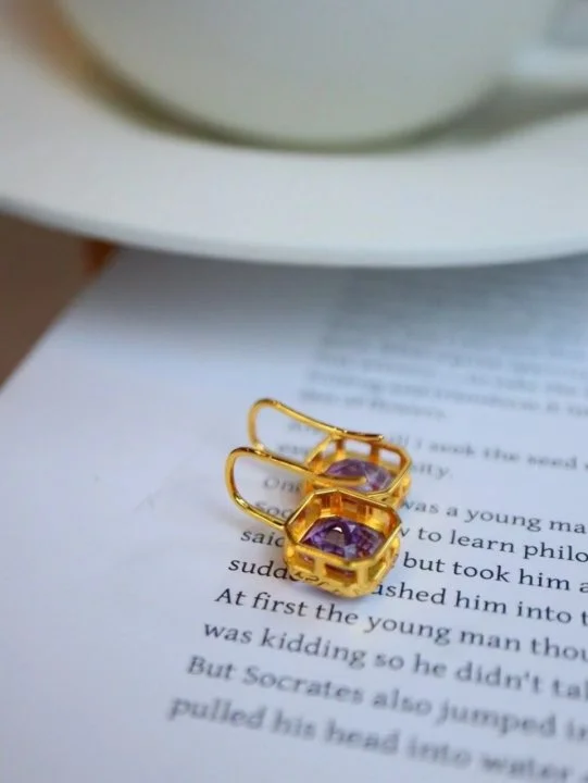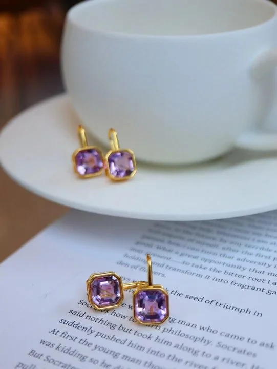 Gift these exquisite earrings to someone special or indulge yourself with a piece that promises elegance and style. The blend of amethyst and gold is not just a fashion trend but a timeless addition to any wardrobe, offering a blend of beauty that never fades.