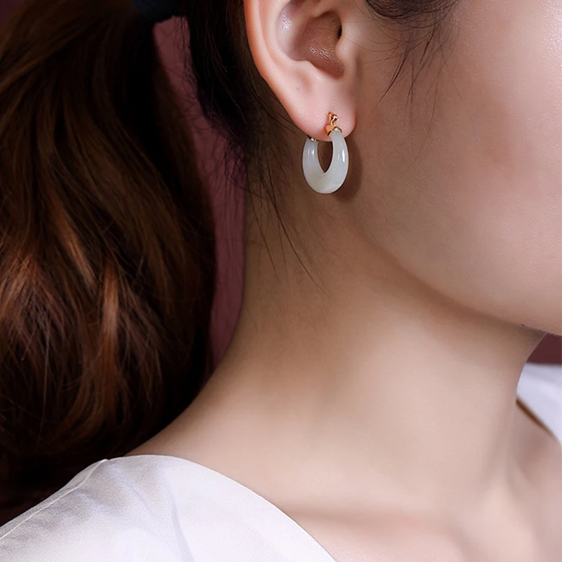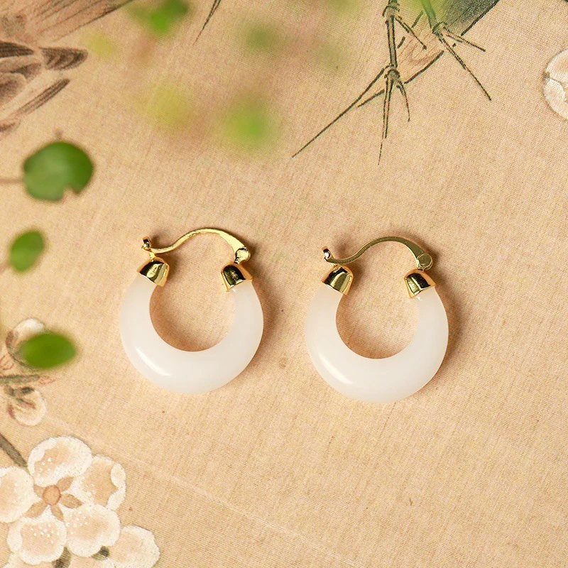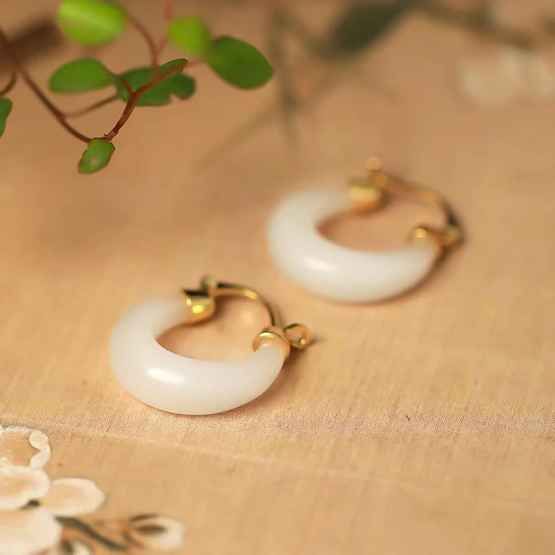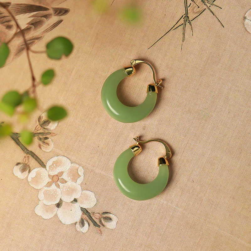 Be the first to review “Designer’s Original Natural Gold Silk Jade Crescent Earrings,”