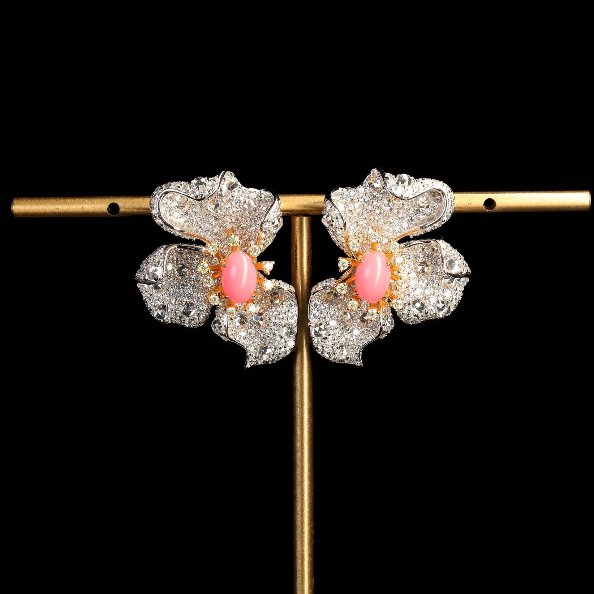 Un mélange exquis de matériaux : Diamond Red Coral Phalaenopsis Pink Flower Fine Earrings