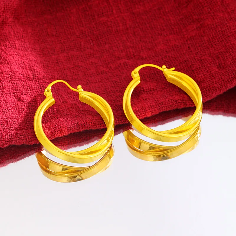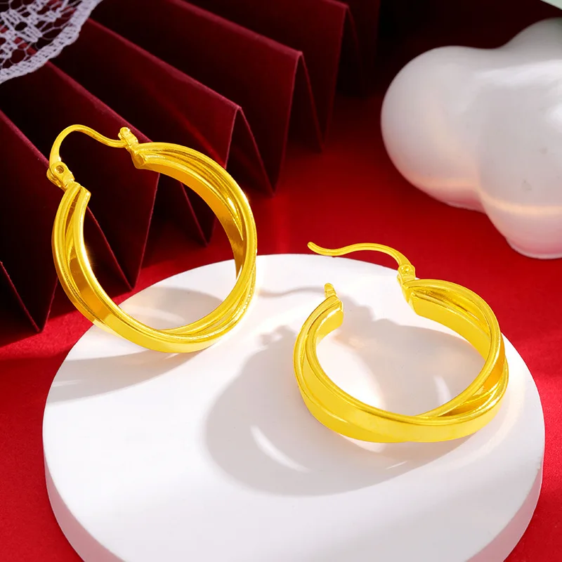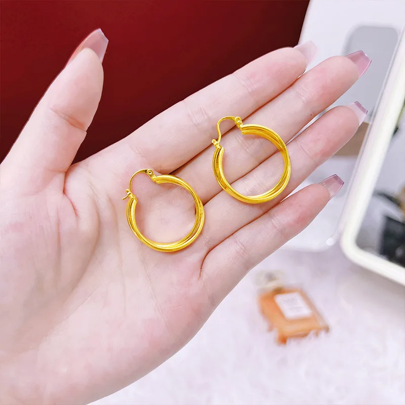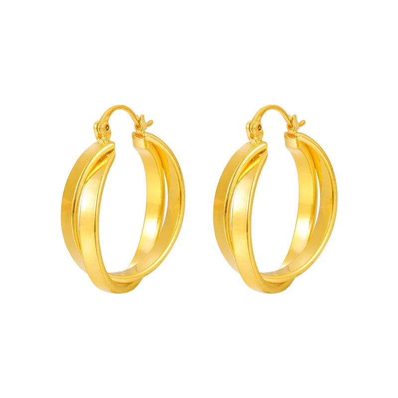 Transform Your Look with Double Hoop Earrings Women’s 24K Gold AU999 – Minimalist Double Hoops