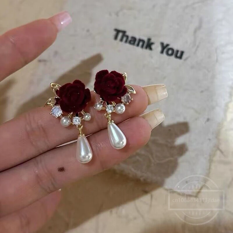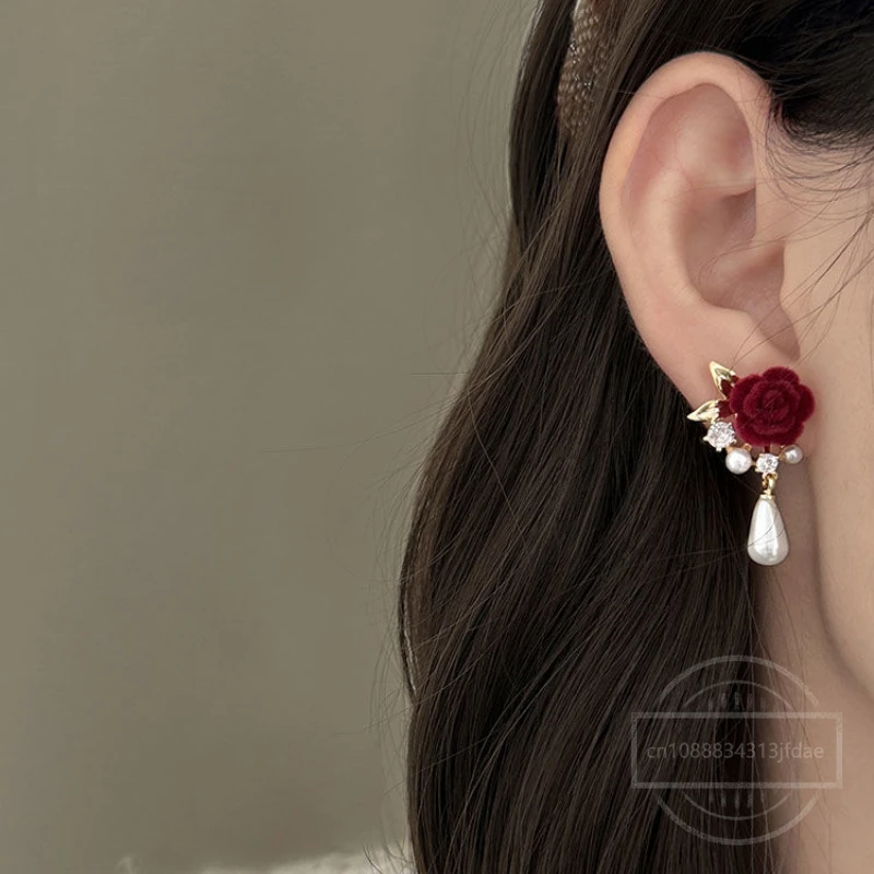 A Distinctive Charm with Elegant Red Flower Earrings