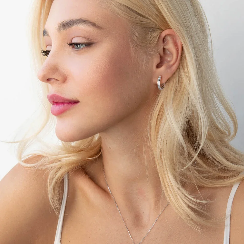 The Moissanite Diamond Hoop Earrings Sterling Silver Earrings offer an elegant touch to any outfit, showcasing sparkling moissanite gemstones that capture light with every move. Whether for a formal event or casual outing, these earrings elevate your style effortlessly.