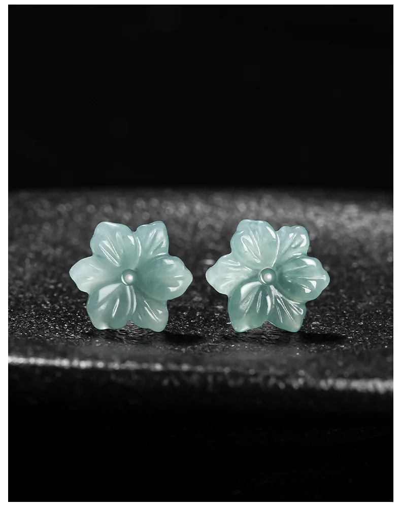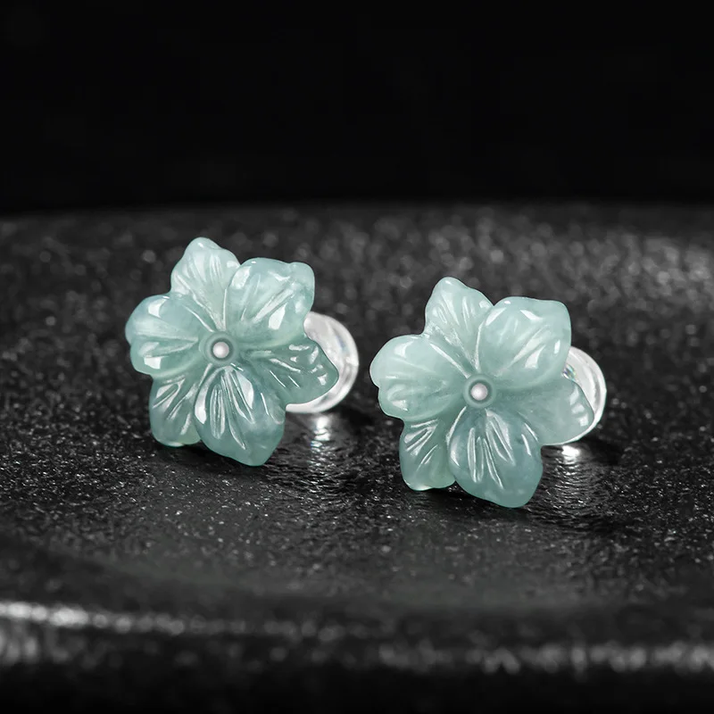 Caractéristiques des Natural A-grade Jade Blue Plum Blossom Earrings Ice Seed Jadeite Petals
