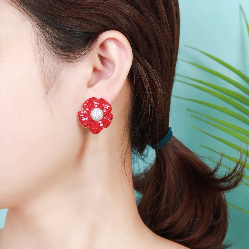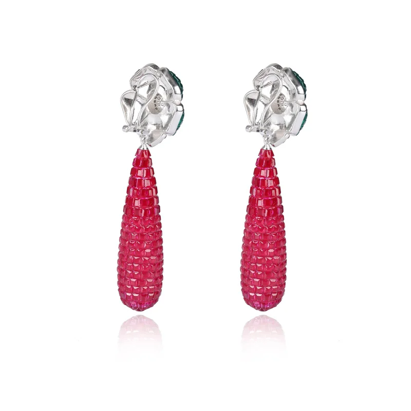 Explore our Silver Drop Big Earring Flower Created Nano Ruby Emerald to elevate your style with elegance and luxury.