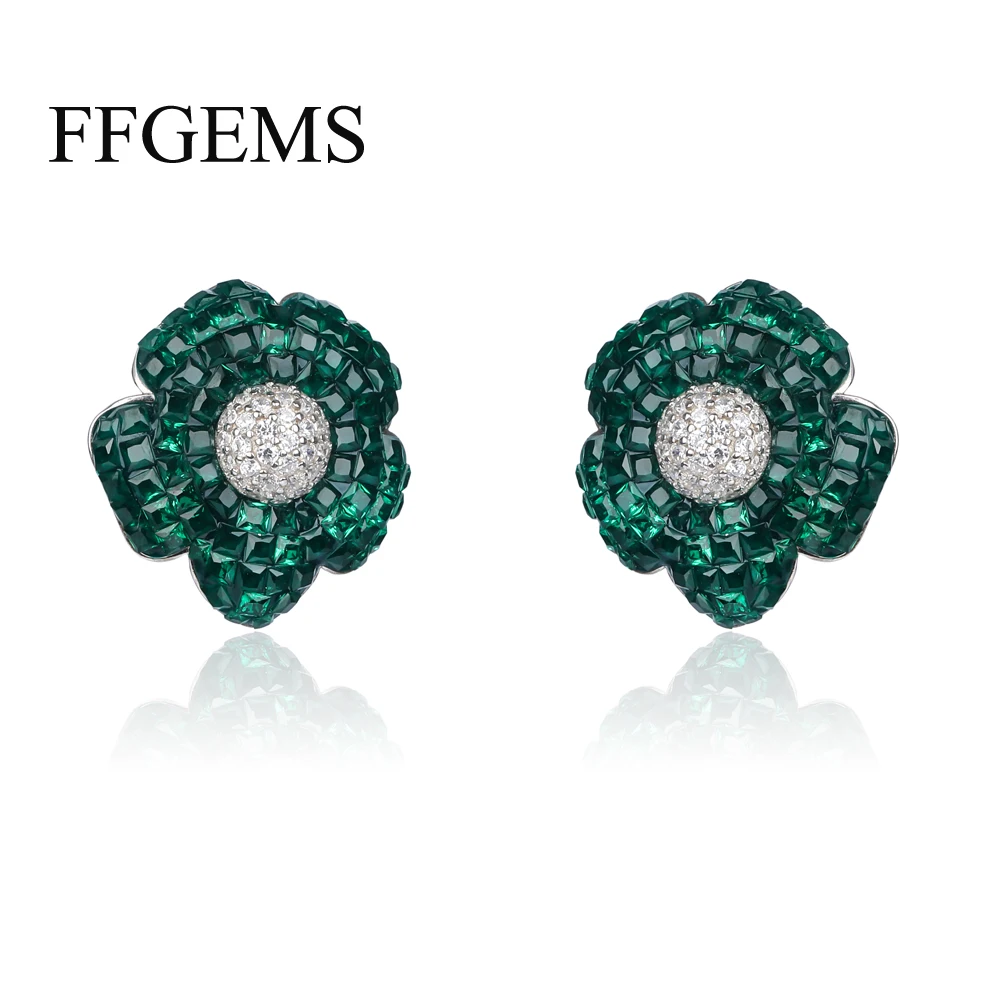 Versatile Style with Silver Drop Big Earring Flower Created Nano Ruby Emerald