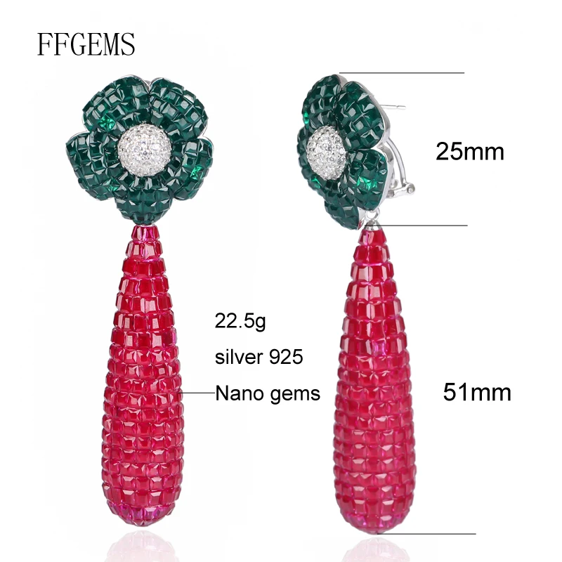 Wearing the Silver Drop Big Earring Flower Created Nano Ruby Emerald is not just about jewelry but an experience of luxury. Its arresting design offers a modern take on classic elegance, ensuring it becomes a staple centerpiece for your jewelry repertoire. Each facet reflects ingenuity and chic appeal, making it a prized possession for those who appreciate fine detail.