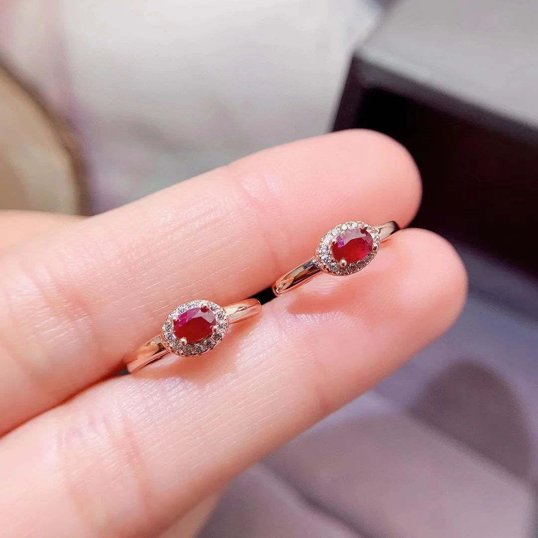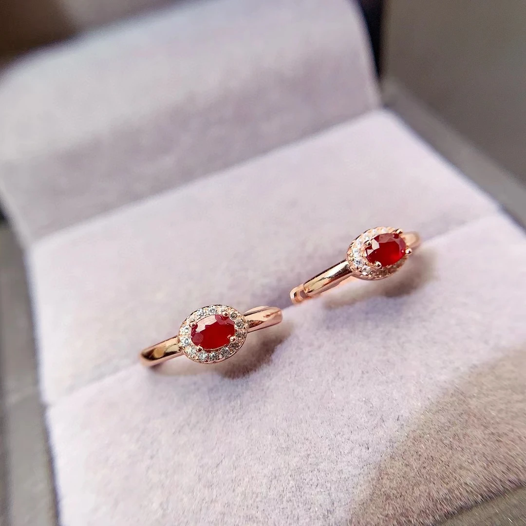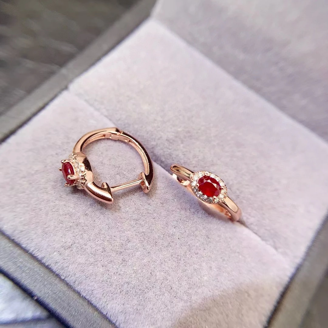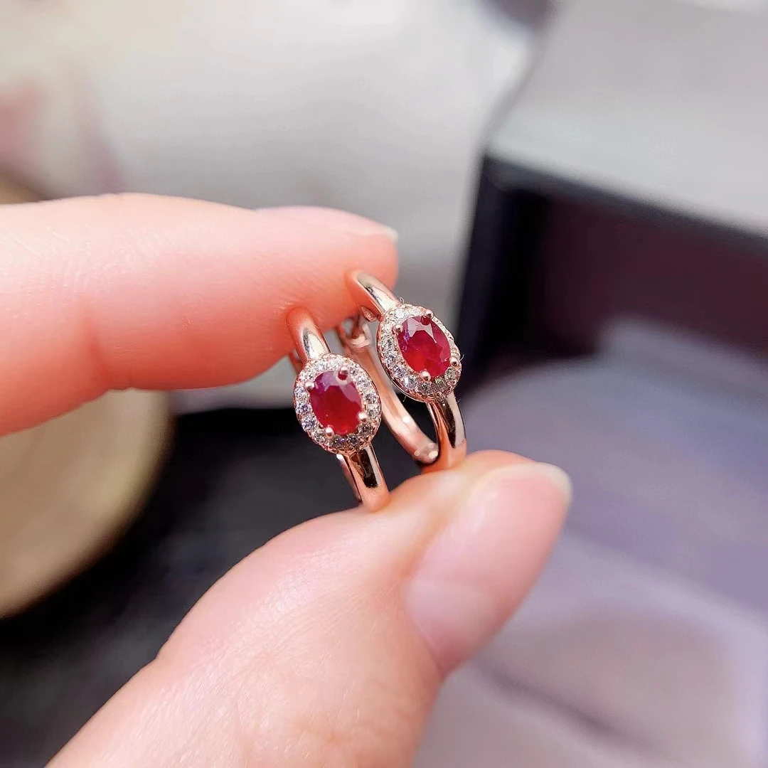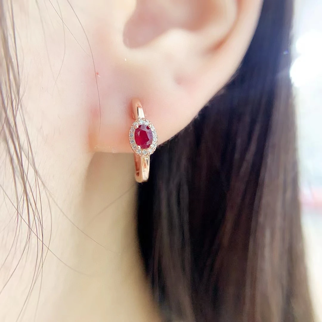 Boucles d’oreilles en argent Silver Hoop Earrings 3mm*4mm Total 0.3ct Natural Ruby Earrings pour un style élégant