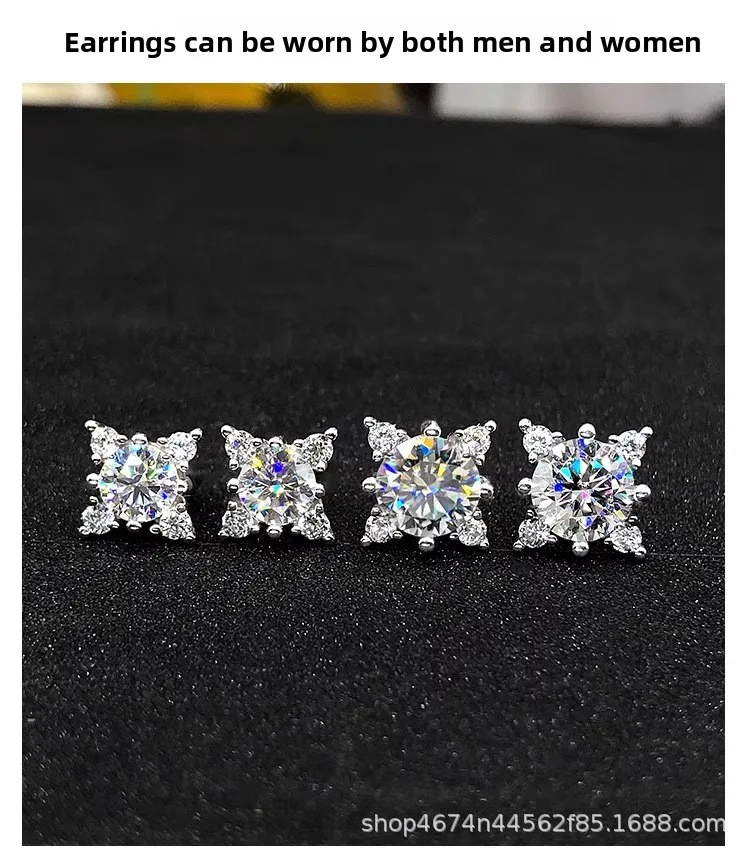Experience Versatility with Sterling Silver 4-Prong Star 1CT*2 Moissanite Stud Earrings
