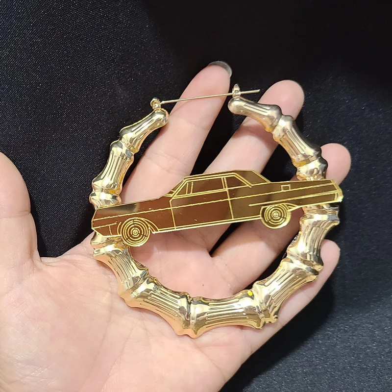 Express Your Unique Taste with Big Golden Bamboo Earrings Inspired by Vintage Cars